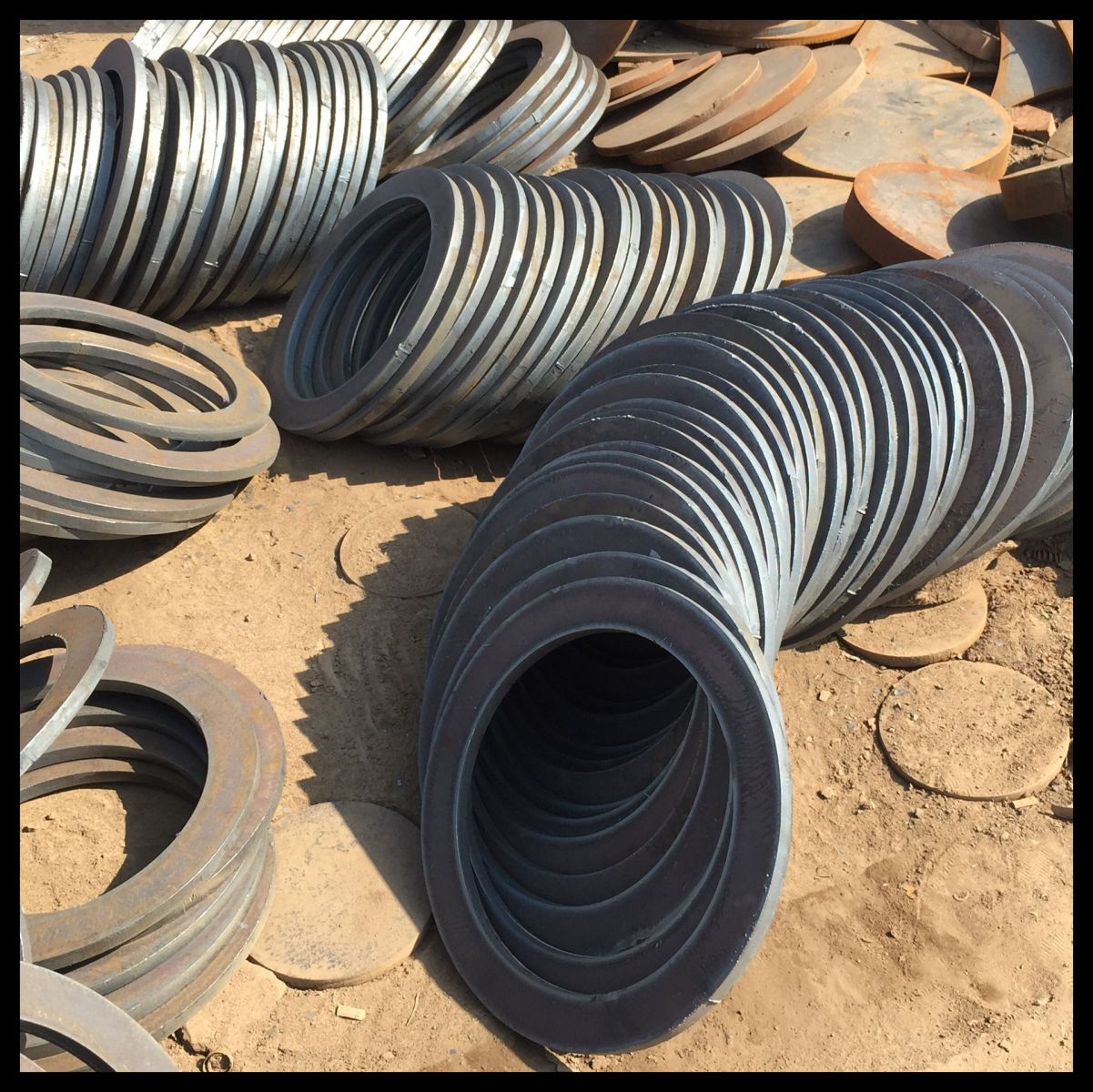 卷制法蘭用中板割條子然后卷制成圓的工藝叫做卷制,多用于一些大型法蘭的生產。卷制成功之后進行焊接,然后壓平,再進行水線及螺栓孔的工藝的加工。